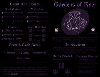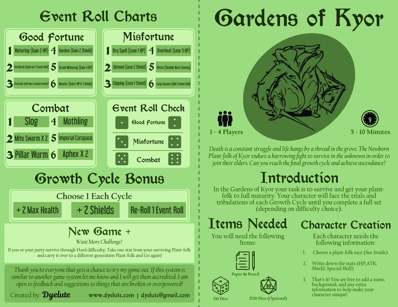 Gardens of Kyor is a rogue-lite RPG experience designed to have fun alone or with a few friends and meant for quick gameplay. You will take the role of A fledgling plant-folk and see if you can survive to full maturity in the harrowing world of Kyor.